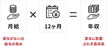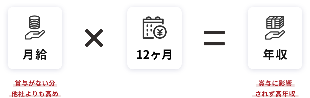 大型連休がある月でも安定した収入となり、あらゆる資金計画が立てやすくなります。