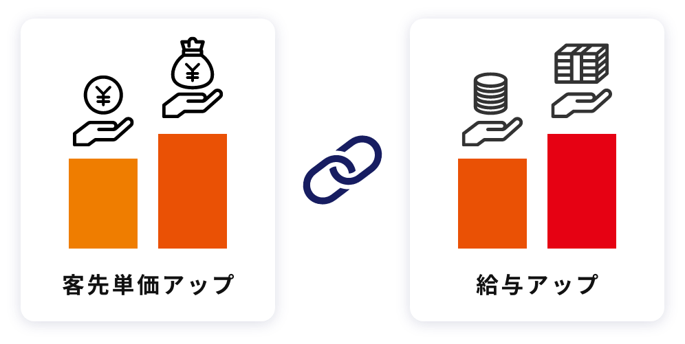 自分の価値を、正しく評価できる環境。「今の給与は、自分のスキルに見合っているのか?」そんな疑問に応えるため、当社では単価連動型給与制度を導入しています。エンジニアとしての市場価値を可視化し、納得できる報酬体系を実現。自分の成長が、ダイレクトに評価につながる仕組みです。